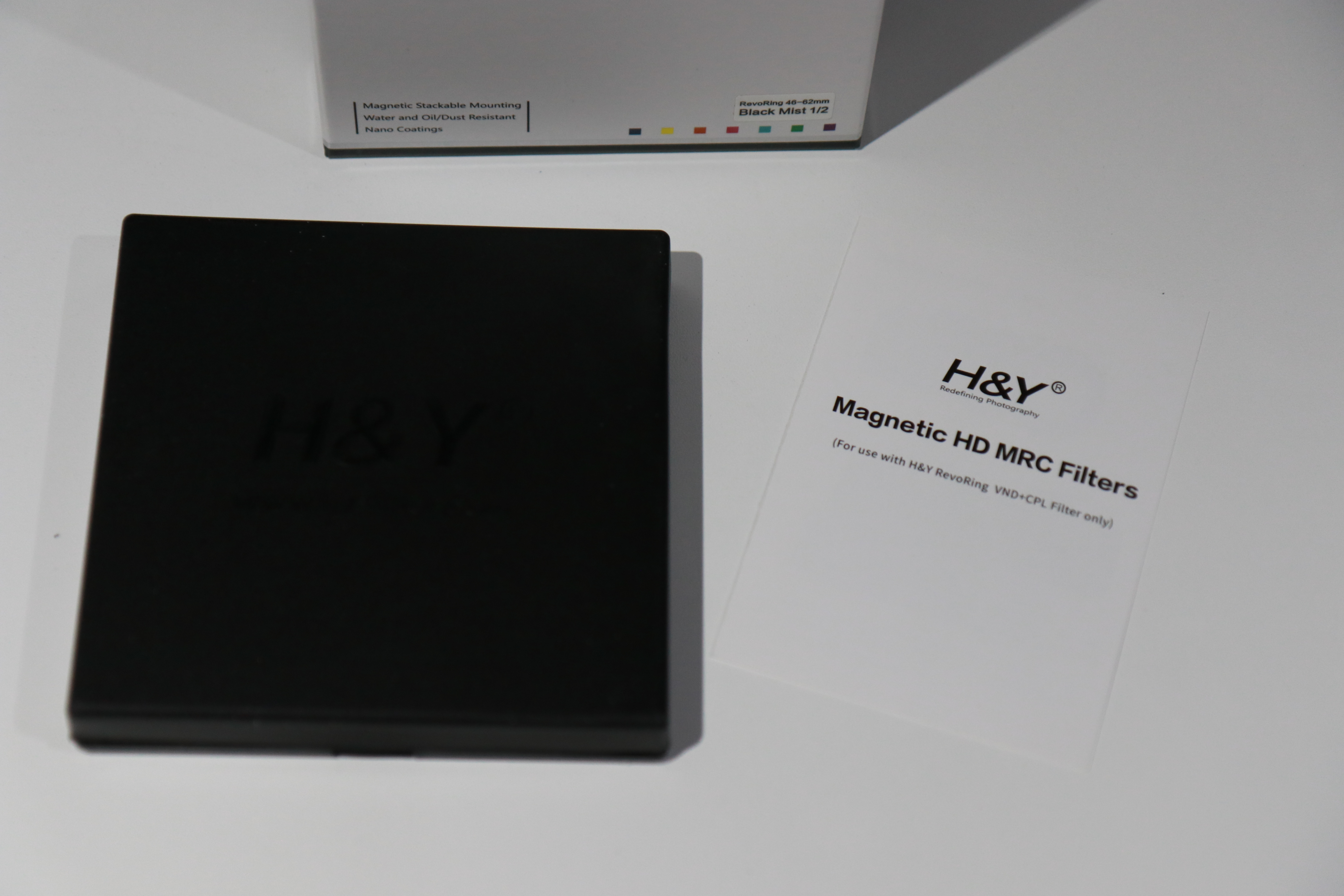 왼쪽 검정색 박스가 H&Y VND+CPL 레보링 필터(46mm-62mm)